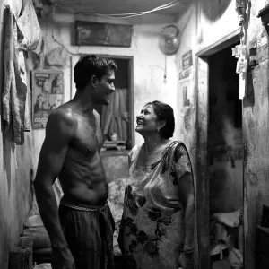 «A muscular, perspiring Indian man with a criminal background joy...»