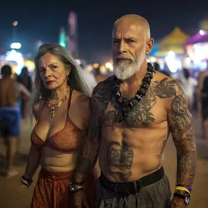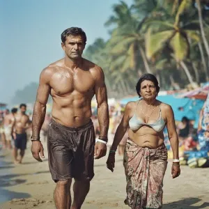 «A filthy rich muscular indian sweaty beefy man walking beside h...»