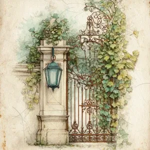 «Print-ready junk journal page, A4 portrait full-bleed, 300 DPI....»
