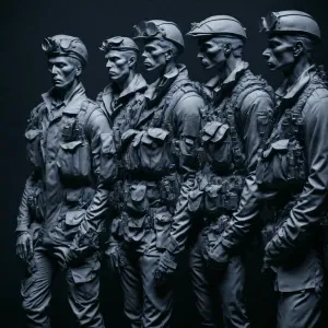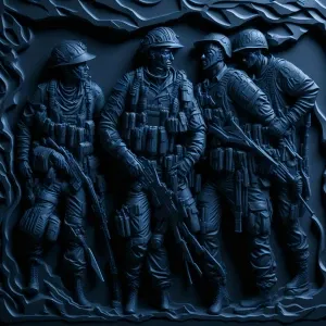 «Design a high-contrast grayscale 3d bas relief of a marine soldi...»