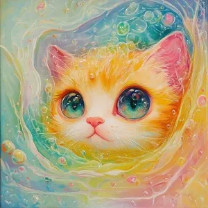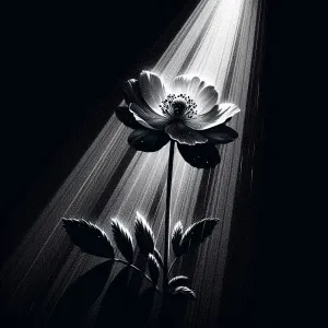 «A cat sitting on a windowsill, its face lit by a shaft of light...»