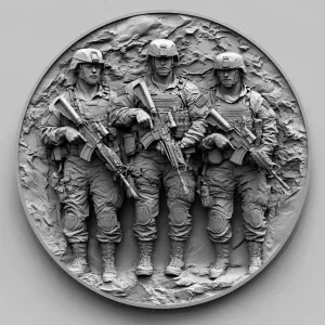 «Design a high-contrast grayscale 3d bas relief of three marine s...»