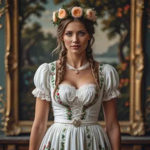«hyper realistic photography, look to the front, German bride in...»