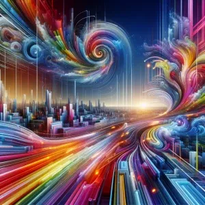 «A futuristic cityscape viewed from a high vantage point, where t...»