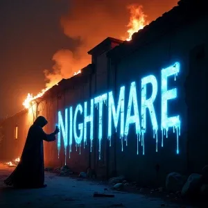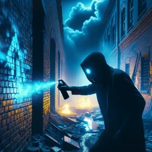 «A sinister, shadowy figure with glowing eyes, wielding a spray c...»