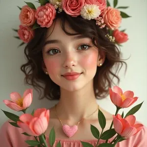 «A beautifully [realistic young woman] with a warm, loving expres...»