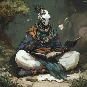 «Male kick boxing monk with long hair having a shadow monster fro...»