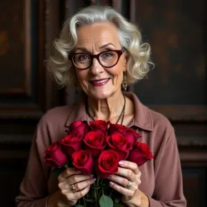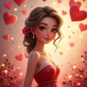 «A photograph of a fashionable young woman in a valentine's day a...»