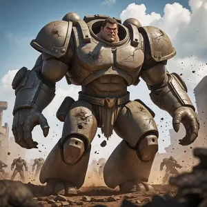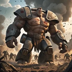 «Create an image of a colossal, juggernaut character plowing thro...»