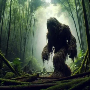 «A humanoid looking hair covered sasquatch walking through the de...»