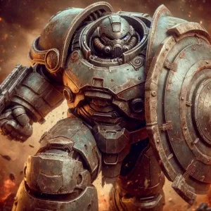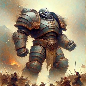 «Create an image of a colossal, armored juggernaut character plow...»