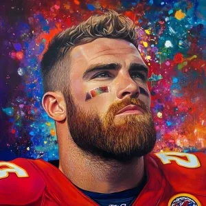 «A geometric art piece featuring overlapping circles, triangles,...»