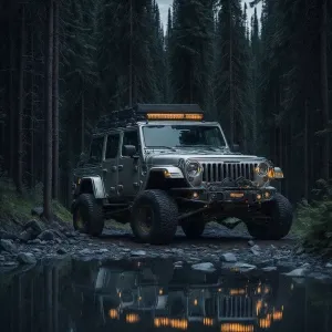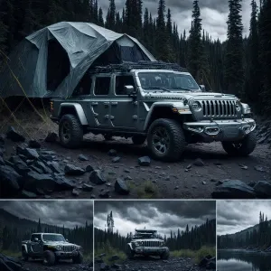 «A rugged, beefed-up Jeep Gladiator with metalic crysal gray pai...»