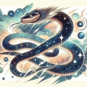 «Create an image of a celestial quantum serpent that embodies pow...»