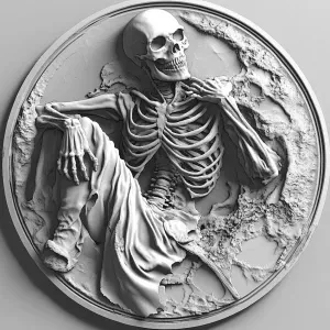 «Design a high-contrast grayscale 3d bas relief of death, The com...»