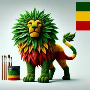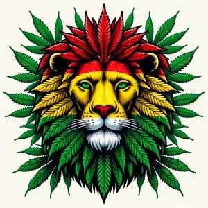 «Weed in the form of a lion in the colors of rasta»