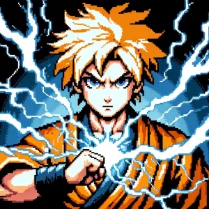 «Create an image of Zenitsu Agatsuma surrounded by thunder formin...»