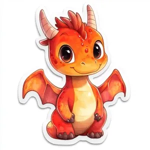 «Design a cute, cartoon-style dragon sticker graphic featuring vi...»