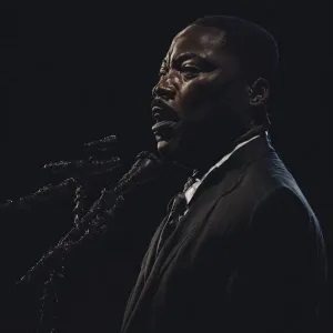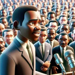 «"Standing resolutely at the podium, Martin Luther King Jr. addre...»