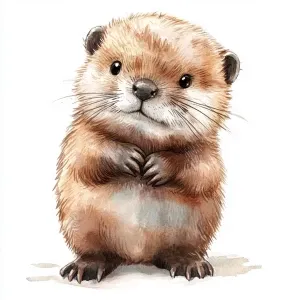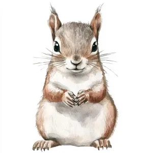 «Simple style, watercolor illustration, squirrel looking forward...»