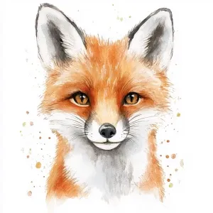 «Simple style, watercolor illustration, fox, soft colors, woodlan...»
