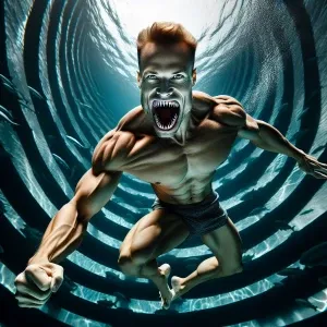 «Dynamic underwater photograph of a muscular female figure with s...»