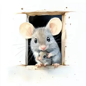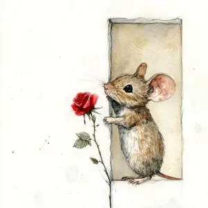 «Mouse peeking around the doorway, watercolor, holding and smelli...»