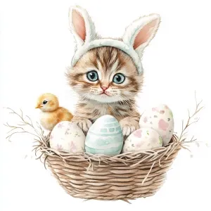 «Cat with plush bunny ears headband, watercolor, illustration, si...»