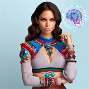 «Create a woman of Aztec, Maya, and Ashkenazi descent who exudes...»
