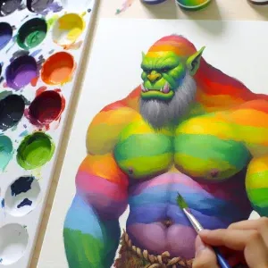 «Create an image of an ogre painted with acrylics featuring a spe...»