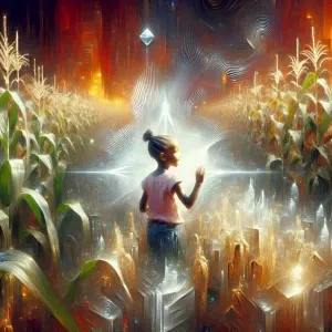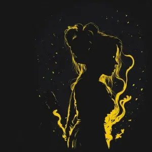 «Create an abstract piece of art depicting a girl amidst chaotic...»