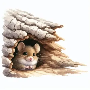 «Cute mouse peeking out of a small wooden door, watercolor, illus...»