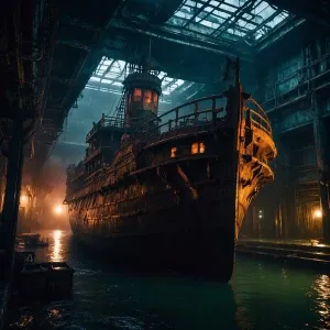 «A sinister, decaying galactic galleon, blotched with dark hues a...»