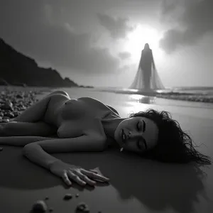“A surreal black and white horror composit...»