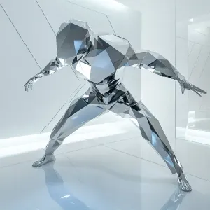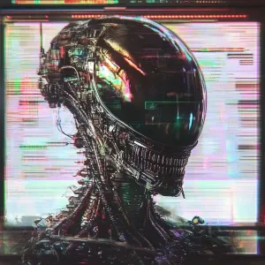 «Depict a glitchy alien cyborg composed of VHS static and pixelat...»