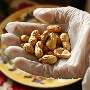 «a close-up of a hand wearing a white disposable glove holding a...»