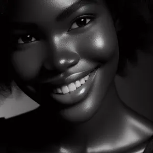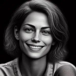 «A portrait of a woman smiling warmly, the light highlighting the...»