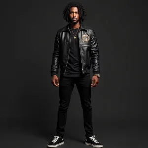 «Mic Master is a tall and lean Nigerian male figure, with a confi...»