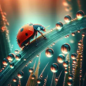 «A macro view of a ladybug crawling on a blade of grass, emphasiz...»
