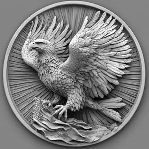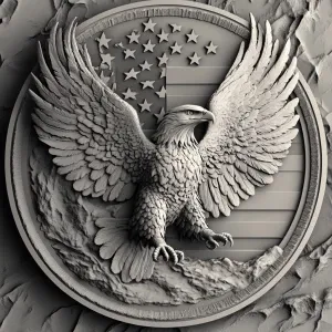 «Create a grayscale bas relief design featuring a majestic eagle...»