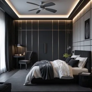 «Create a detailed image of a theater entrance with bold symmetry...»