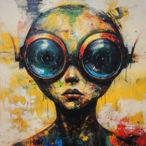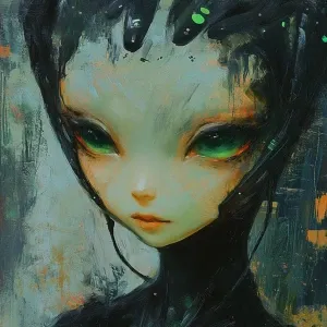 «Action painting art girl alien»