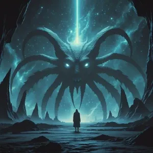 «* A cosmic horror image, a scene of unsettling beauty and dread,...»