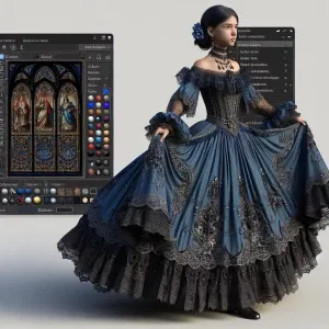 «Create a 3D Gothic-style bathroom featuring a luxurious amethyst...»