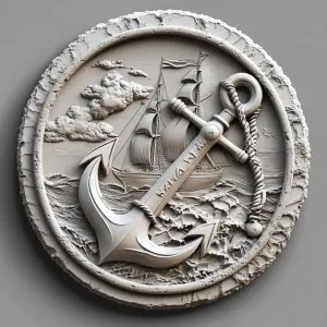 «a bas relief of a fouled anchor in front of a seascape with a Na...»