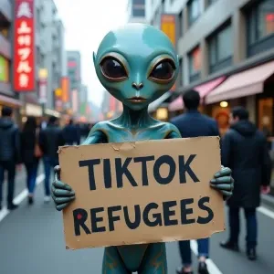 «"In the midst of an street in Japan, an extraterrestrial being...»