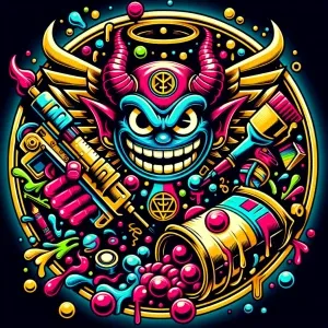 «Create a vibrant cartoon-style logo with a circular border. The...»