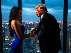 «*"A sultry, cinematic scene unfolds in a lavish, dimly lit penth...»