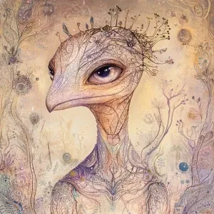 «A serene alien hybrid portrait inspired by the craft-focused tra...»