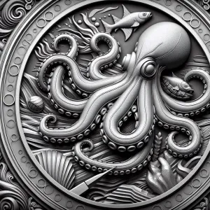 «Design a high-contrast grayscale 3d bas relief of a giant octopu...»